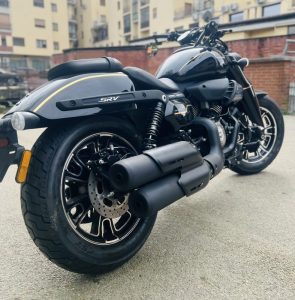 Linee muscolose, posizione di guida bassa e aggressiva, sound che ti entra in testa: questa non è una moto qualunque, è una dichiarazione di stile.